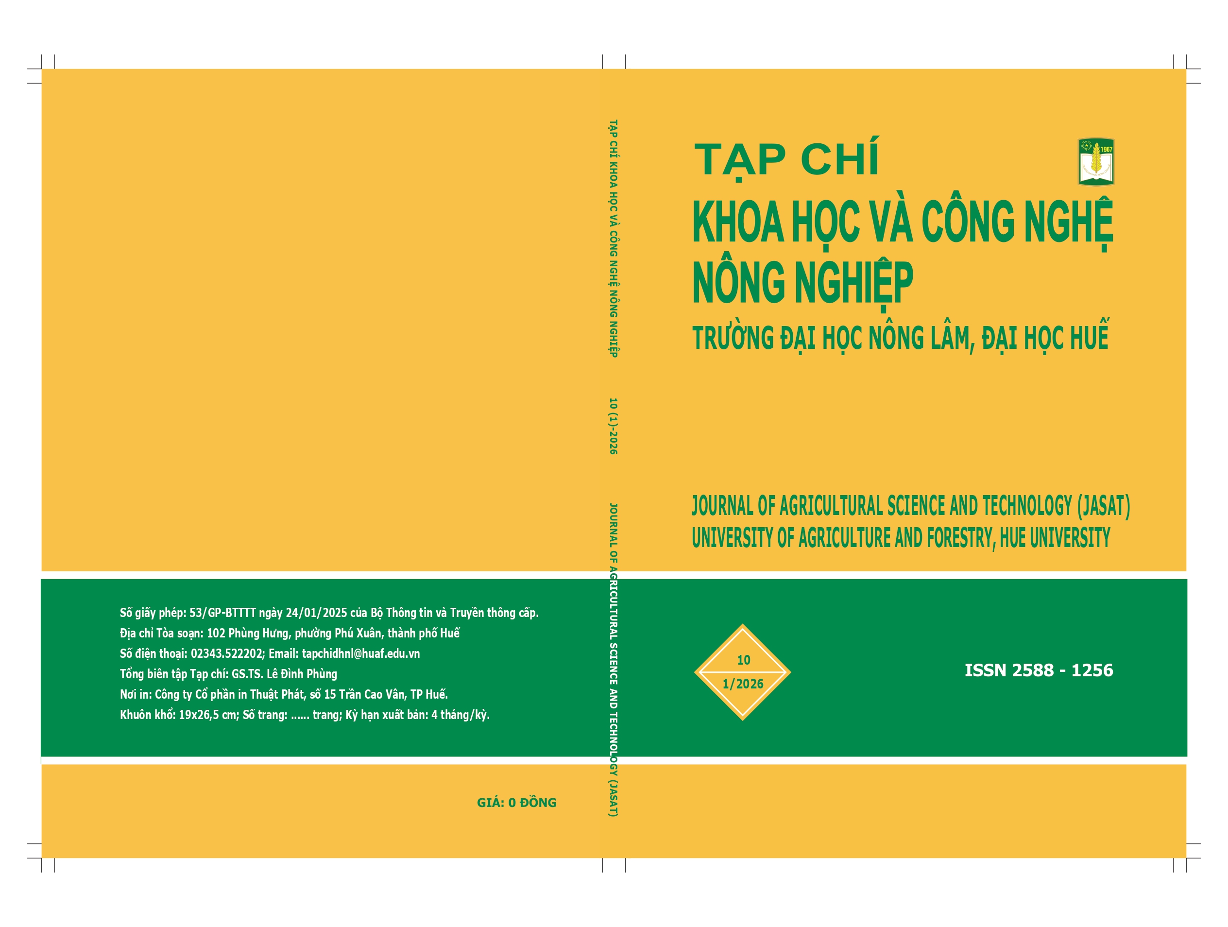 Tập 10 Số 1 (2026): Tạp chí Khoa học và Công nghệ Nông nghiệp